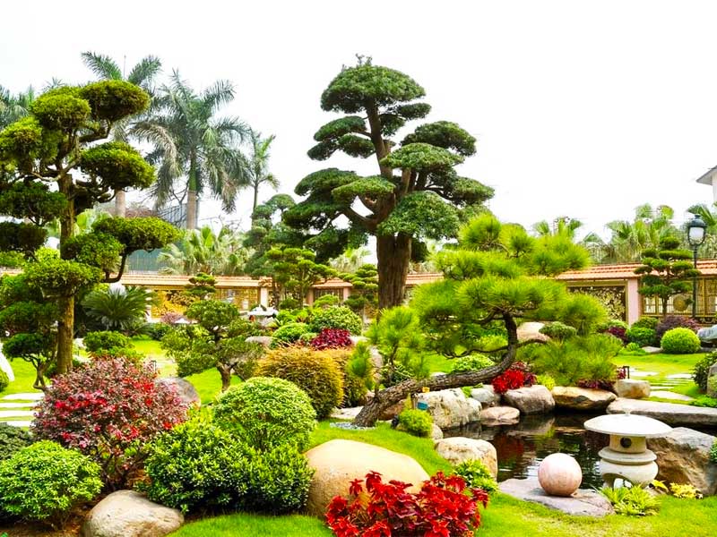 - Cây bonsai, hoa cỏ, cây bóng mát: mang sắc màu thiên nhiên bốn mùa, tạo sự cân bằng và hài hòa. Là linh hồn của khu vườn, các loại cây được cắt tỉa cẩn thận, không chỉ tạo hình thẩm mỹ mà còn thể hiện sự tôn trọng vẻ đẹp của tự nhiên.