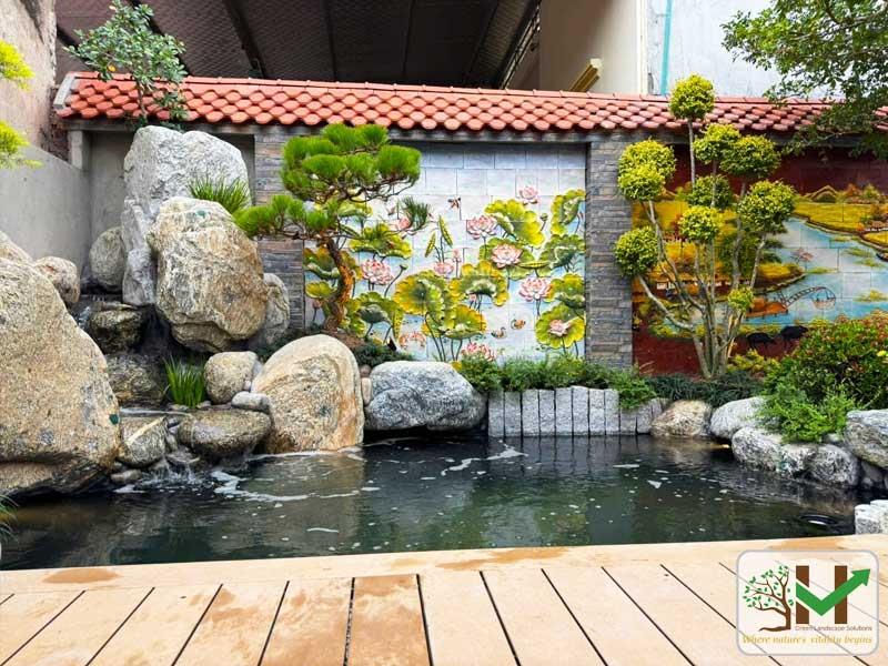 Tiểu cảnh hồ nước và thác đá – Điểm nhấn phong thủy cho khu vườn