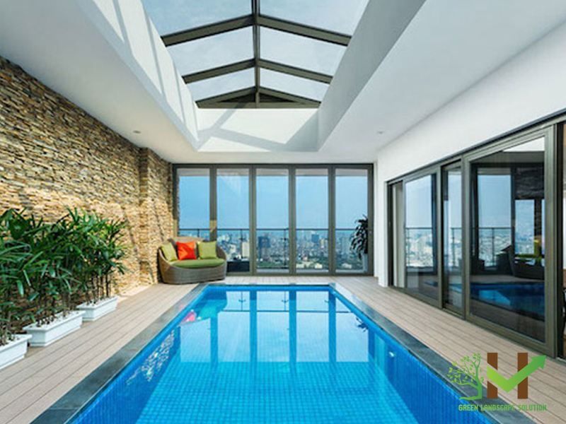 Bể bơi trong nhà ở hiện đại ngày nay không cần tuân thủ theo các quy tắc về hình dáng, kỹ thuật như hồ bơi truyền thống nữa. Gia chủ có thể sáng tạo bất cứ hình dạng nào và bố trí nó ở bất kỳ vị trí nào trong khuôn viên sân vườn nhà mình cho phù hợp với cảnh quan và mục đích sử dụng.