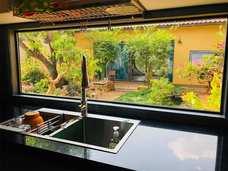 Ngôi nhà mới với nhiều cửa kính khiến không gian trở nên thông thoáng, rộng rãi, gần gũi thiên nhiên hơn bao giờ hết.