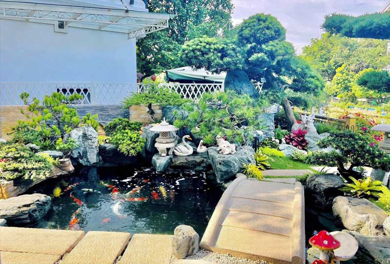 Koi Pond (Hồ Cá Koi): Bắt đầu với một hồ cá Koi nhỏ hoặc trung bình ở giữa sân vườn. Hồ này có thể được thiết kế với các bậc đá hoặc đá lát xung quanh để tạo ra một không gian tự nhiên và hài hòa.