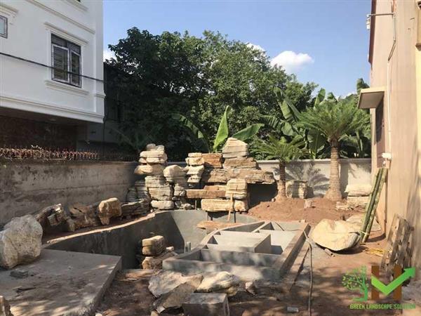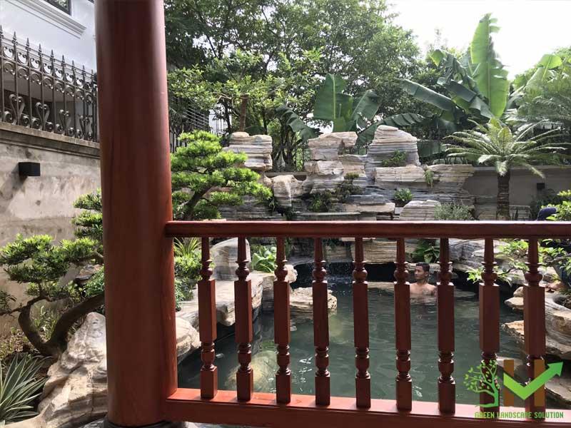 Hồ cá Koi là công trình nổi bật nhất và là điểm nhấn quan trọng được thi công theo kiểu vườn Nhật. Đá tảng lớn kết hợp thành hòn non bộ xung quanh bể cùng các cây hoa bụi nhỏ mang lại cảnh sắc tự nhiên nhất...
