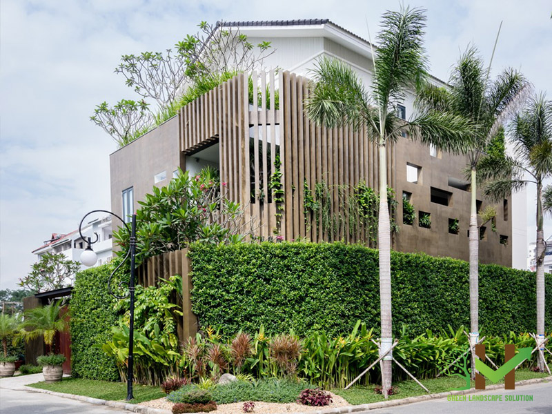 Biệt thự được thiết kế với rất nhiều cây xanh bao quanh vô cùng thân thiện với môi trường.