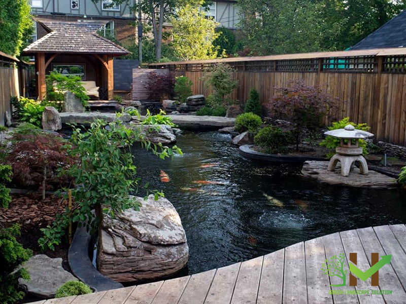 Thiết kế hồ cá koi ngay trong sân vườn đang là sở thích của nhiều chủ biệt thự nhà vườn.
