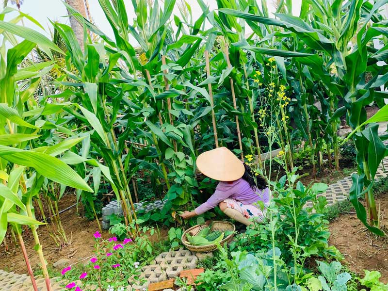 Khu phía ngoài dành cho trồng rau, củ, quả cung cấp lương thực cho cả nhà. Đây là điều mà biết bao gia đình ao ước, đặc biệt là các chị em giỏi nội trợ yêu trồng trọt đúng không nào?