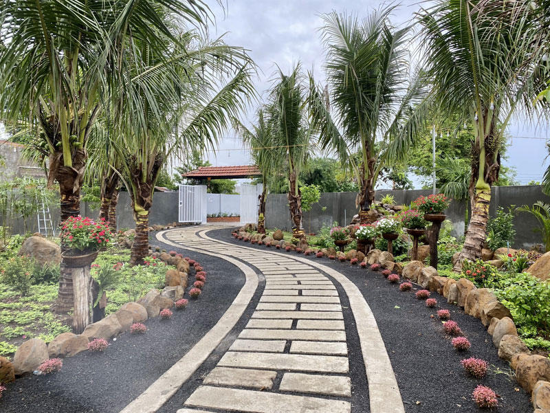 Mảnh đất rộng 1.066m2, cách trung tâm thành phố khoảng 10 phút di chuyển bằng xe máy. Không gian nhà vườn này được xây dựng, cải tạo và hoàn thiện sau nửa năm thi công.