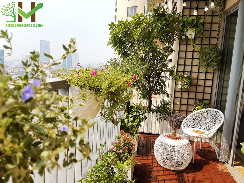1. Đối với thiết kế ban công chung cư nhỏ, bạn có thể trang trí bằng những cây xanh nhỏ xinh, kết hợp với hoa và một chiếc bàn gấp nhỏ nhằm tạo không gian thư giãn cho mọi người trong nhà. Đây sẽ là nơi tuyệt vời để cả nhà có thể ngồi đọc sách, uống trà sau những mệt nhọc công việc.