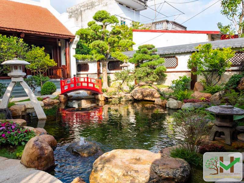 Sân vườn Nhật Bản từ lâu đã được xem là đỉnh cao của nghệ thuật cảnh quan, nơi hòa quyện giữa thiên nhiên và triết lý sống sâu sắc. Trong thiết kế, từng chi tiết như hòn non bộ, hồ cá Koi, lối đi lát đá cuội, cây bonsai, đèn đá, cầu gỗ… đều được sắp đặt có chủ ý nhằm tái hiện vẻ đẹp mộc mạc mà thanh tao.