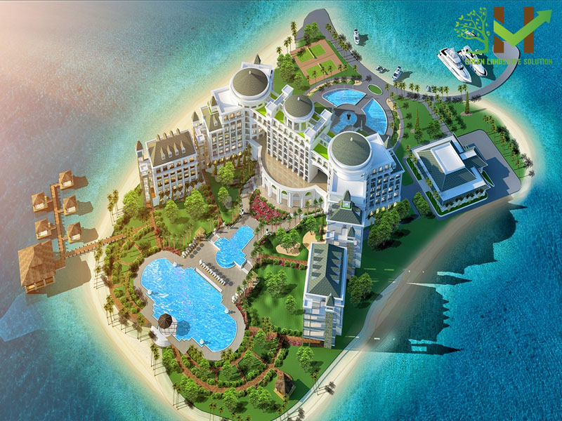 Dung hòa các yếu tố tự nhiên và nhân tạo là bí quyết giúp công trình resort sở hữu vẻ ngoài ấn tượng nhất. các thành phần cần có trong thiết kế cảnh quan khu resort bao gồm: