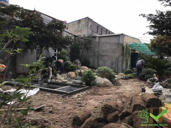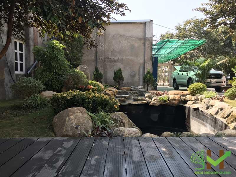 Dưới đây là hình ảnh Hồ Koi mà vuonhoa.vn đã thực hiện và hoàn tất cho gia đình anh Luân tại Hưng Yên, hy vọng công trình này của chúng tôi sẽ là mẫu hồ Koi đẹp mà Bạn đang cần tham khảo cho dự án sân vườn nhà mình.