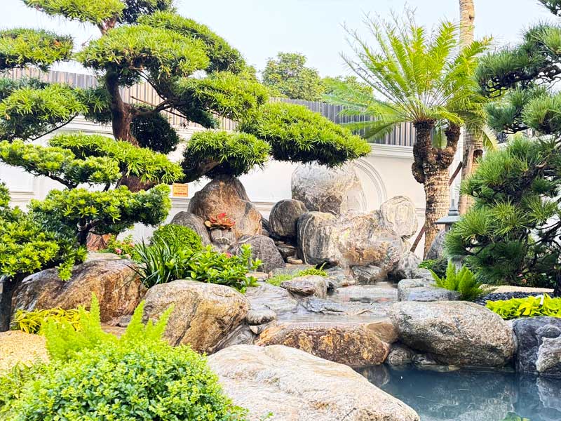 - 🌿 Bonsai, cây cảnh, đèn đá Nhật tô điểm sự tinh tế và triết lý nghệ thuật.